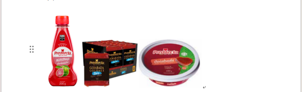 Predilecta公司产品种类繁多,主要产品有:番石榴酱、番茄制品、甜玉米、青豌豆、糖浆、块状糖果、水果蜜饯、调味品等。